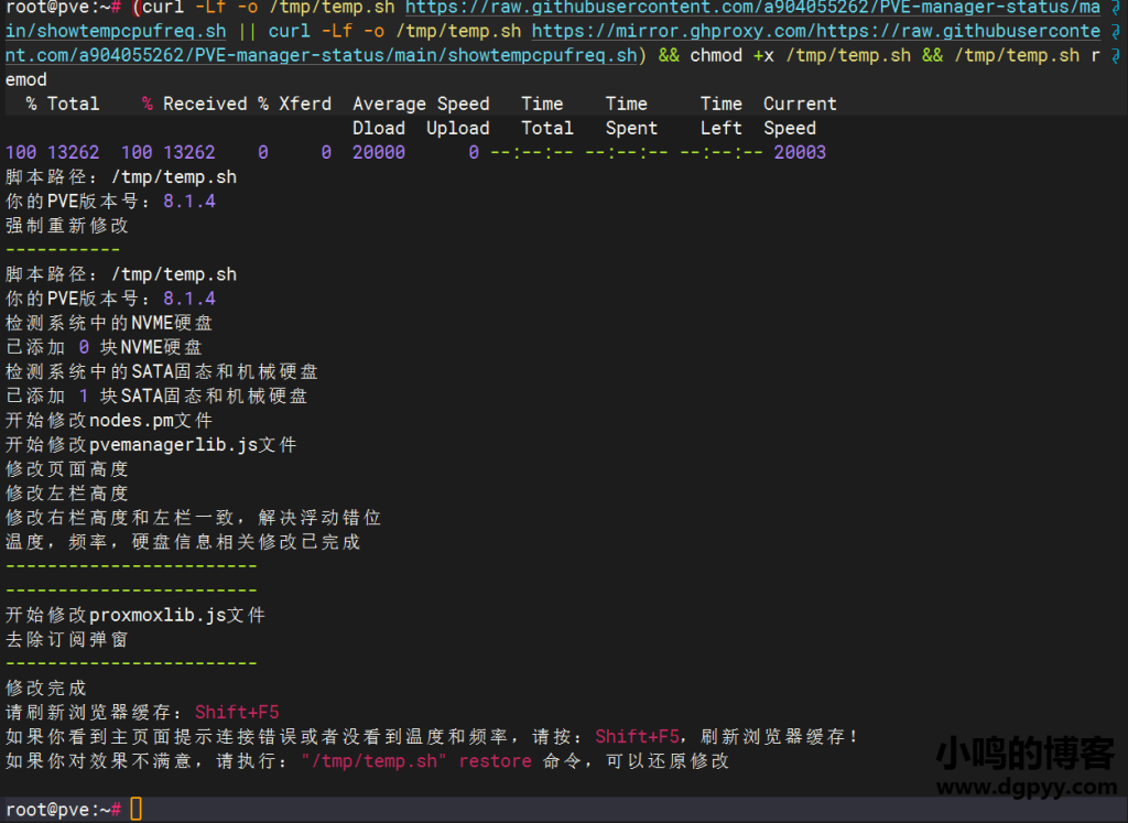 (curl -Lf -o /tmp/temp.sh https://raw.githubusercontent.com/a904055262/PVE-manager-status/main/showtempcpufreq.sh || curl -Lf -o /tmp/temp.sh https://mirror.ghproxy.com/https://raw.githubusercontent.com/a904055262/PVE-manager-status/main/showtempcpufreq.sh) && chmod +x /tmp/temp.sh && /tmp/temp.sh remod